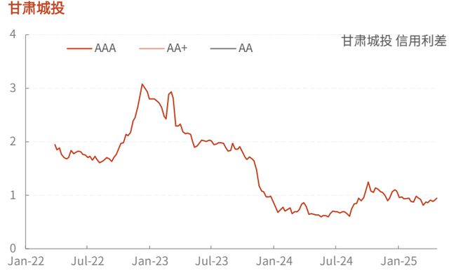 上周各等级城投和非城投信用利差均上行。三个级别的城投信用利差分别上行0.4BP、上行2.3BP、上行1.8BP;三个级别的非城投信用利差分别无明显变动、上行0.9BP、上行3.1BP。
